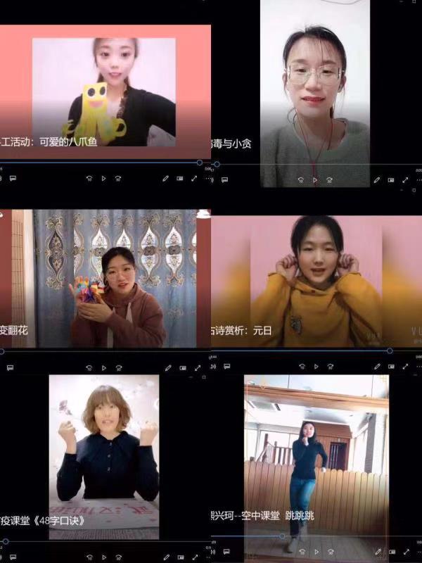 全面展开空中课堂,对老师们也是一个新的挑战,她们群策群力,积极教研,设计制定出了以“手工活动”、“防疫课堂”、“绘本活动”、“科学小实验”、“文化赏析”、“体育游戏”等主题的教学方案和亲子活动。她们将主题活动录制成有趣的视频,通过公众号、班级群、朋友圈、qq群等平台,推送给家长,引导家长与孩子居家活动,共同感知防疫常识,增添乐趣,丰富生活。